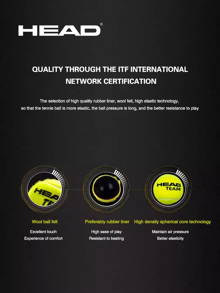 Genuine HEAD Professional Tennis Ball | Team 3 Tour X | Training Ball | Pro Match Balls | High Elasticity | Resistant | Durable